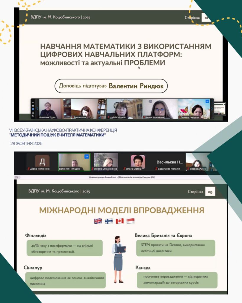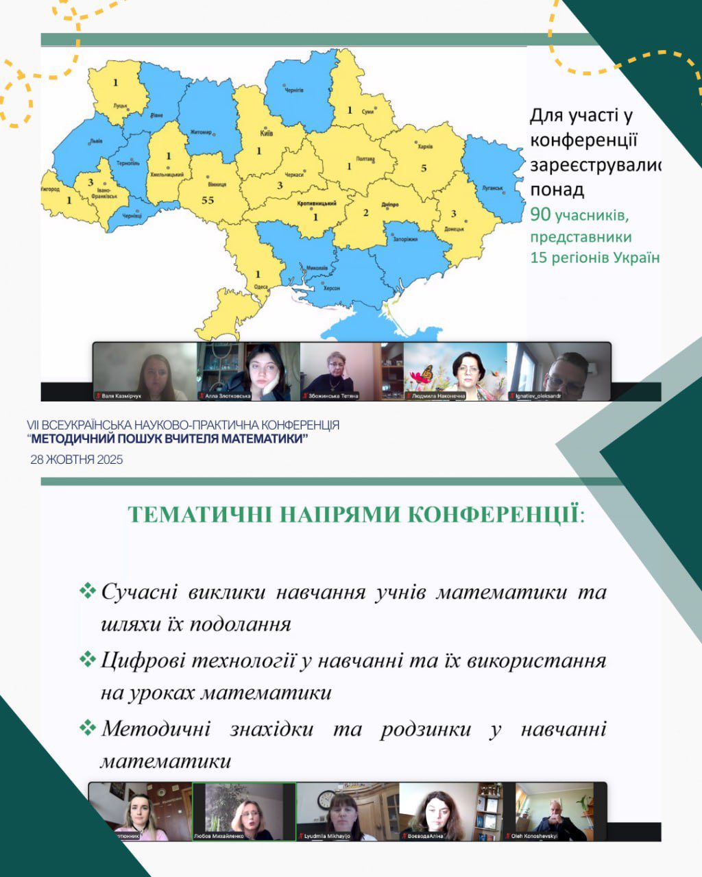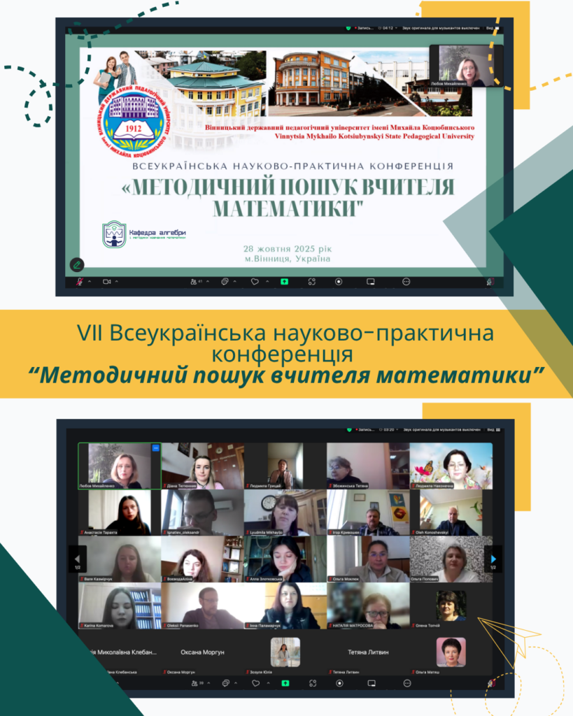28 жовтня 2025 року у Вінницькому державному педагогічному університеті імені Михайла Коцюбинського на базі факультету математики, фізики і комп’ютерних наук була проведена дистанційно VІІ Всеукраїнська науково-практична конференція «Методичний пошук учителя математики»????